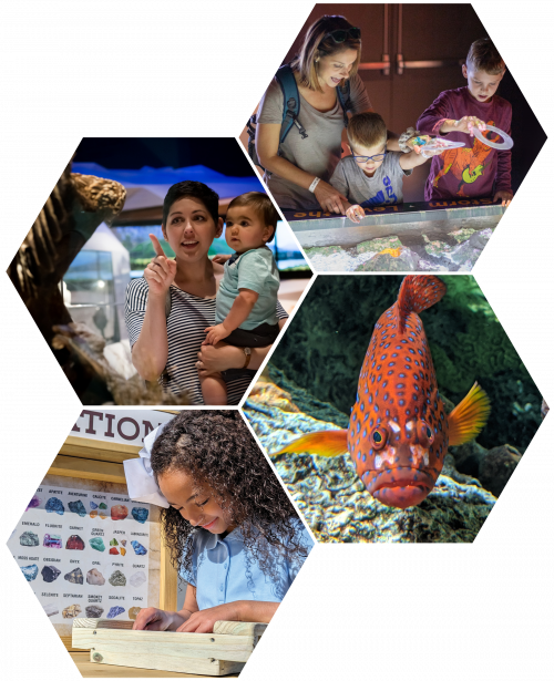 We have a large variety of live animals including many different species of saltwater fish, live coral, moon jellyfish, and numerous species of freshwater turtles and fish. Our terrariums house eastern hellbenders, an eastern indigo snake, alligators, and more, and our Wonderful World of Insects exhibit is home to various kinds of terrestrial and aquatic insects.